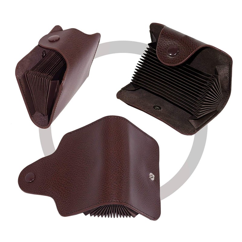 MJ Vision 13 Slots Premium PU Leather Credit Card Holder Wallet for Men & Women (10.5 x 7.5 x 2.6 cm - Brown)