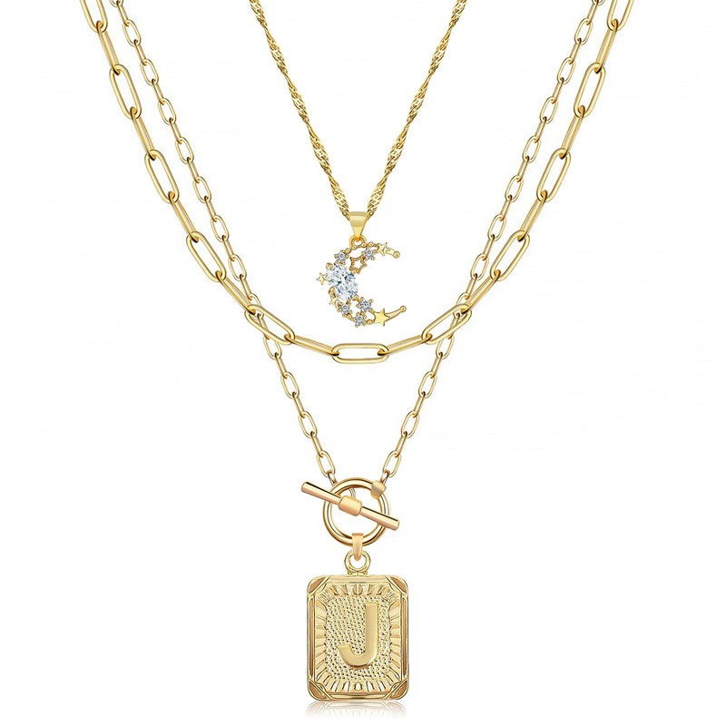 - Meaning: Gold layered necklaces for women has initials printed on the front, a combination of retro and fashion. Wear it to show off your name, your new surname, your mother's name, and even your alma mater! Hide my love in your name