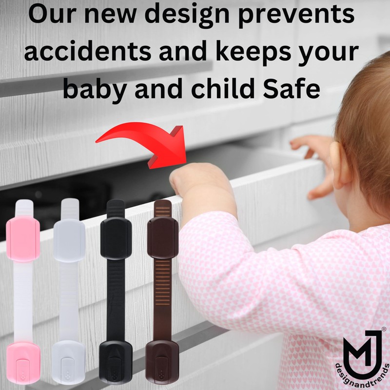 MJdesignandtrends ® Child Safety Straps Premium Baby Proofing Door & Cupboard Locks | 30 Second Install | No DIY | Smart Unlock - Many Colors to fit All Rooms (White, 12)