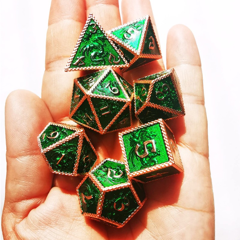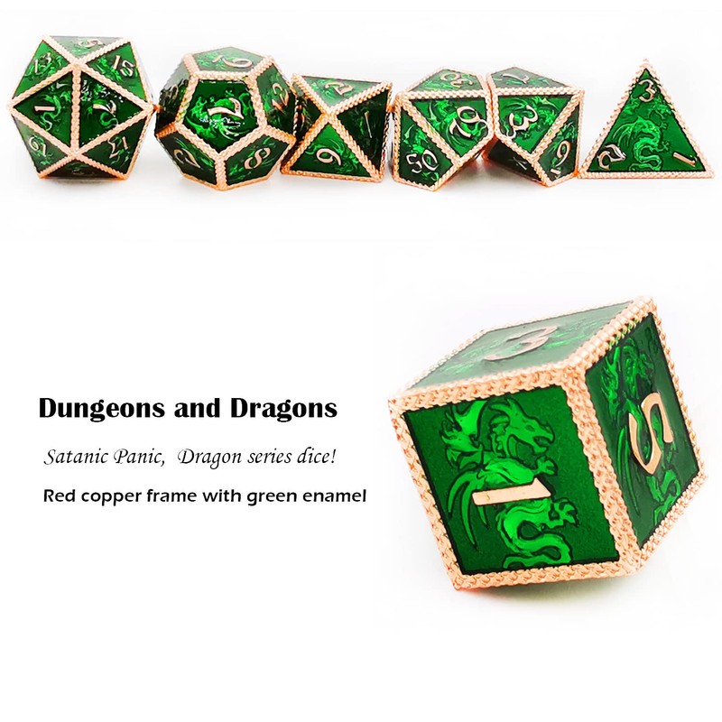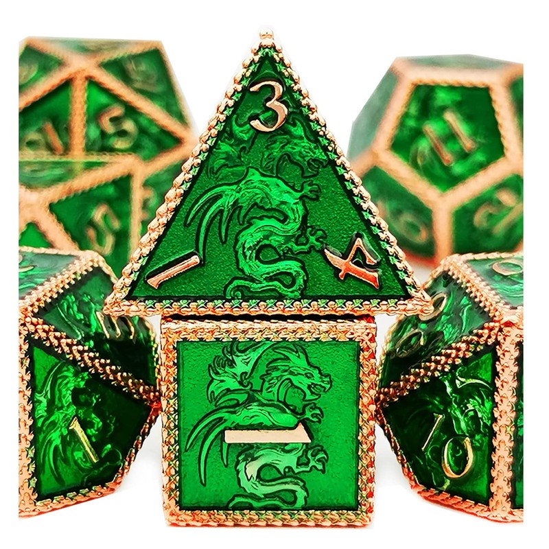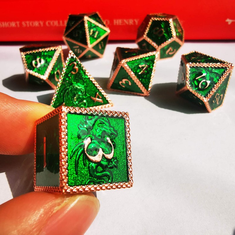 MJDICEOK DND Metal Dice Dragon Set 7 Role Playing Dice D&D Solid Dice Red Copper Green