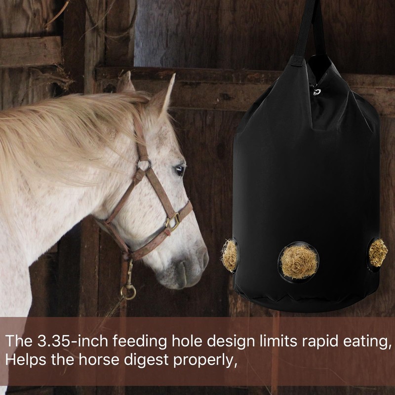 - 【Convenient and User-Friendly Design】Designed with utmost concern for user convenience, our horse hay bag features double-sided hanging straps for effortless hanging and removal, catering to diverse feeding scenarios.The large opening at the top ensures easy filling and refilling, saving you time and making it an efficient feeding solution that can be taken anywhere you go.