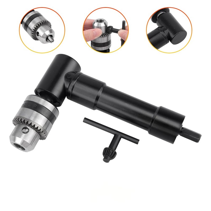 - Practical Design : Our cordless right angle drill attachment adapter features a chuck acceptance range from 0.04” - 3/8”/ 1mm-10mm, and the size can be adjusted by keyed chuck; the 90° drill adapter design can be used in tricky places; the 8mm hex shank connecting shaft has a wide range of applications