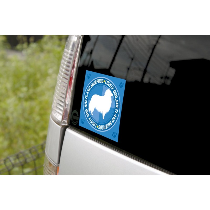 MK-2 Design Name Tag Woodman Dog Sticker Lovely Dog Shetland Sheepdog Sheltie Silhouette Blue Back