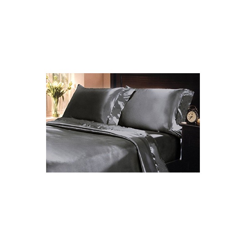 Mk Collection 4pc Soft Silky Satin Solid Color Deep Pocket Sheet Set (Dark Grey/Charcoal, Queen)