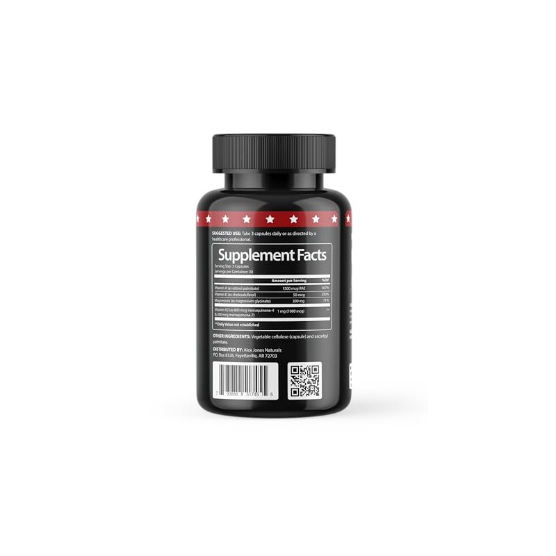 Alex Jones Naturals MK-Ultra Magnesium & Vitamin K2 Supplement, Advanced Neuroboost Formula, 90 Capsules, Brain Support Formula with D3