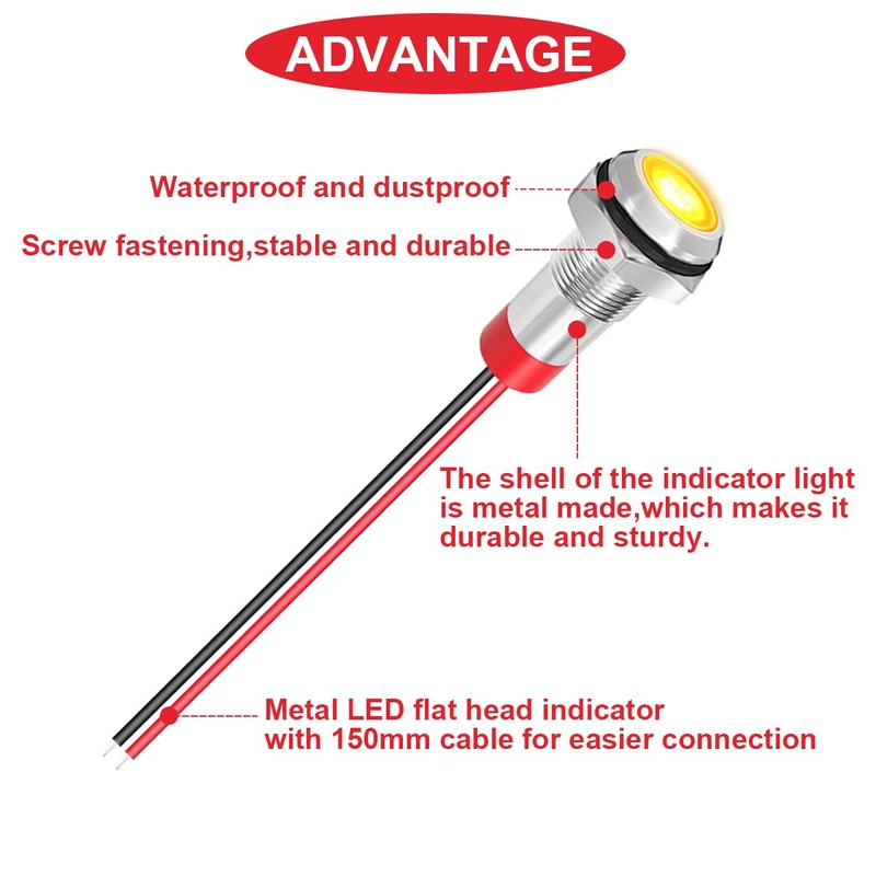 - Waterproof Design,LED indicator light is made of high-strength metal, which is dustproof, waterproof, rust-proof, corrosion-resistant, durable and so on.