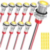 MKBKLLJY 10Pcs 8mm DC12-24V Yellow LED Metal Indicator Light Waterproof Signal Lamp with 150mm Cable Length Metal LED Indicator Light and Wiring Cap for Car Interior Trucks Boats Engine taillight