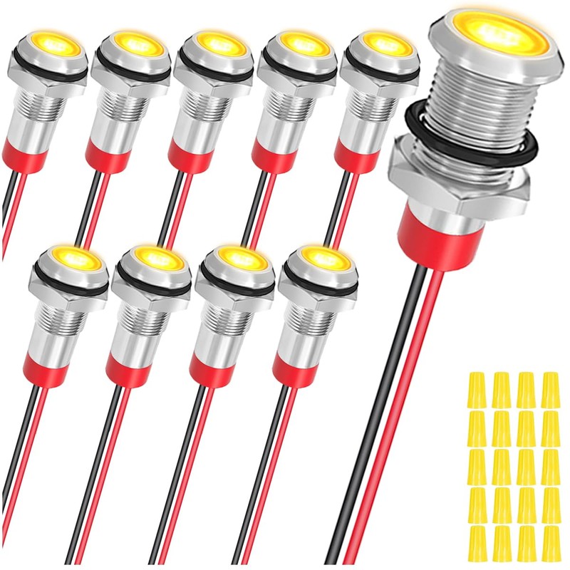 - PACKAGE CONTENT,10x Yellow 8mm LED Indicator Lights;20 x Wiring Cap.