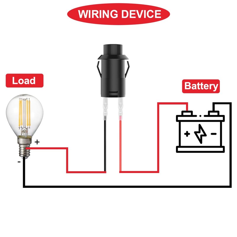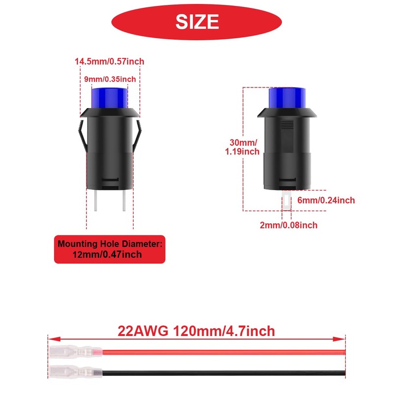 • Snap installation: this 12 V push button switch has a snap-in design, which makes the installation of this small switch much easier and faster.