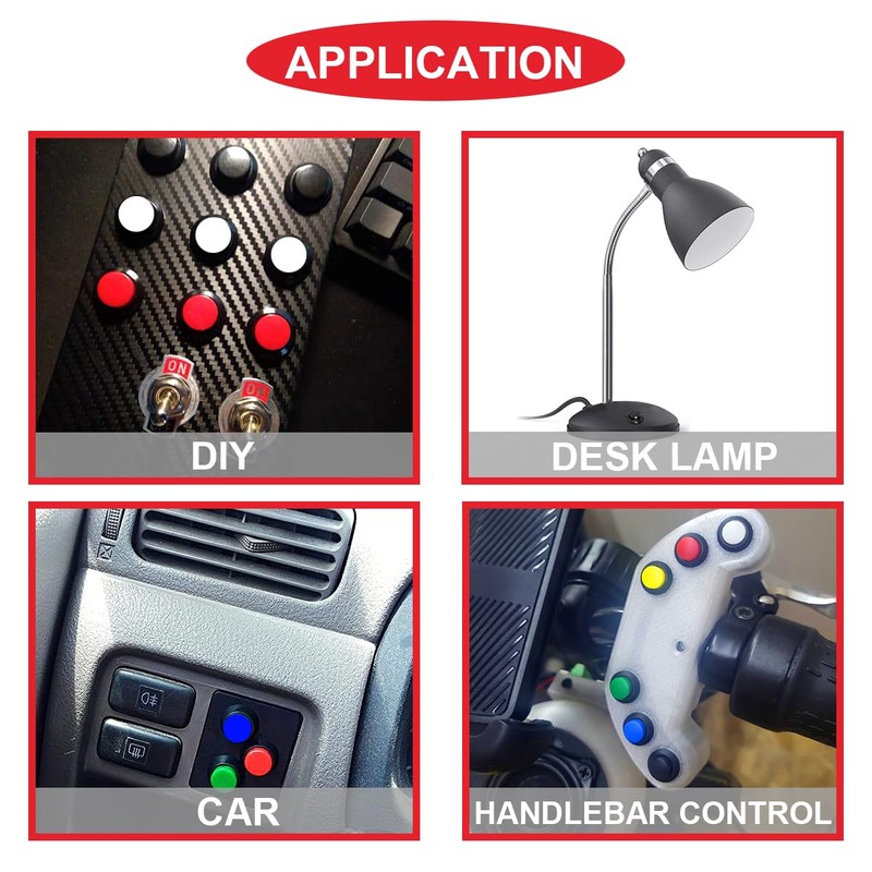 • Wide application: widely used for PC computer power switch, table lamp switch, fan switch, water dispenser switch, DIY electronic circuit switch, etc.