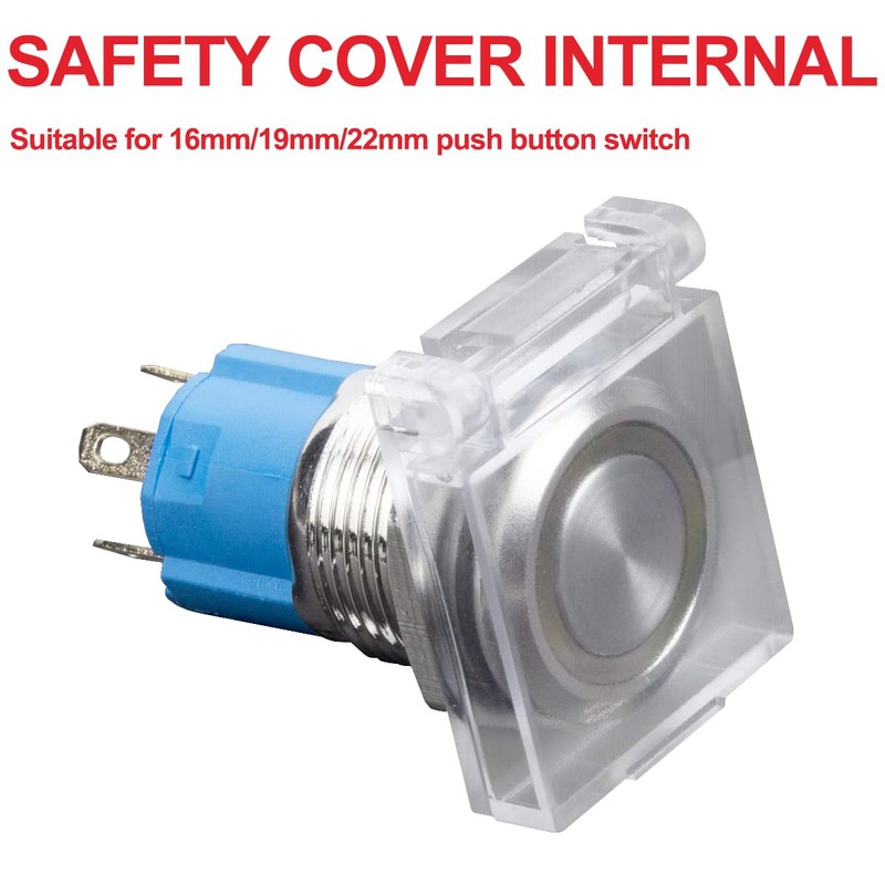 - SPECIFICATIONS:Mounting Hole Diameter:16mm/19mm/22mm;Material:Plastic;Color:Transparent White Clear;The Size of Safety Push Button Cover :1.3*1.1*0.17inch (L*W*H);Safety cover internal height :3.0mm.
