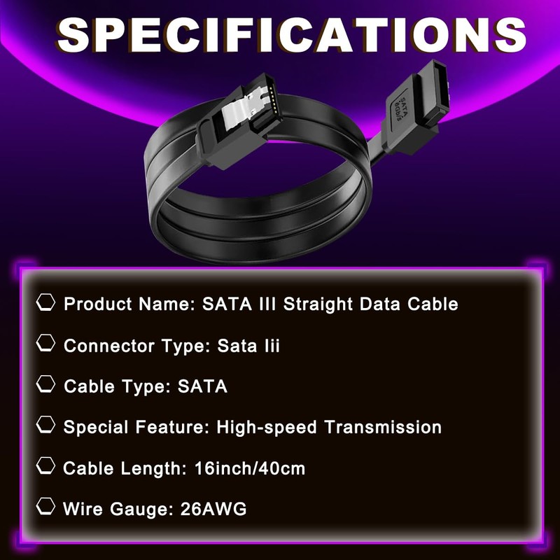 - 【Wide Application】SATA Cable III adopts 3.0 dual-channel, widely used in Solid-state drives, Computer Host, SATA Hard Disk, SSD, SATA Optical Drive, CD Drivers, CD Writer and all SATA interfaces devices.