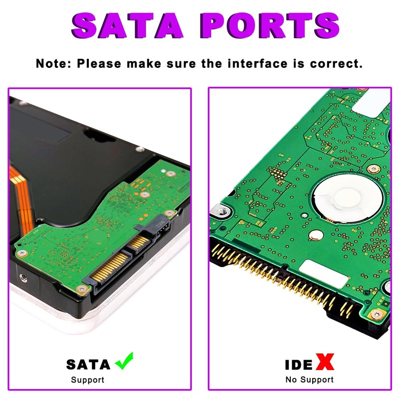 - 【High-speed Data Transfer】Supports up to 6Gbps, perfect for modern SATA III SSDs and high-speed drives. Backward compatible with SATA II (3Gbps) and SATA I (1.5Gbps), but data transfer speed is limited by the rating of the connected device