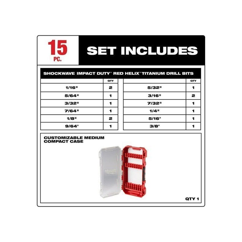 MKE-48-89-2370 for Milwaukee Tool 15 Pc. Red Helix Cobalt Drill Bit Set