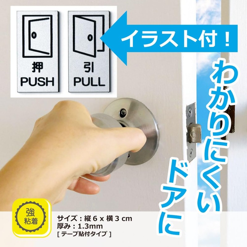 MKE Push Pull Plate Push Door Plate Door Sign Plate Silver Sticker (B/Small/Silver)