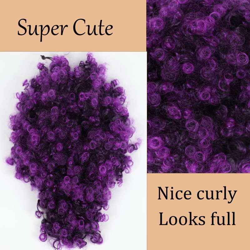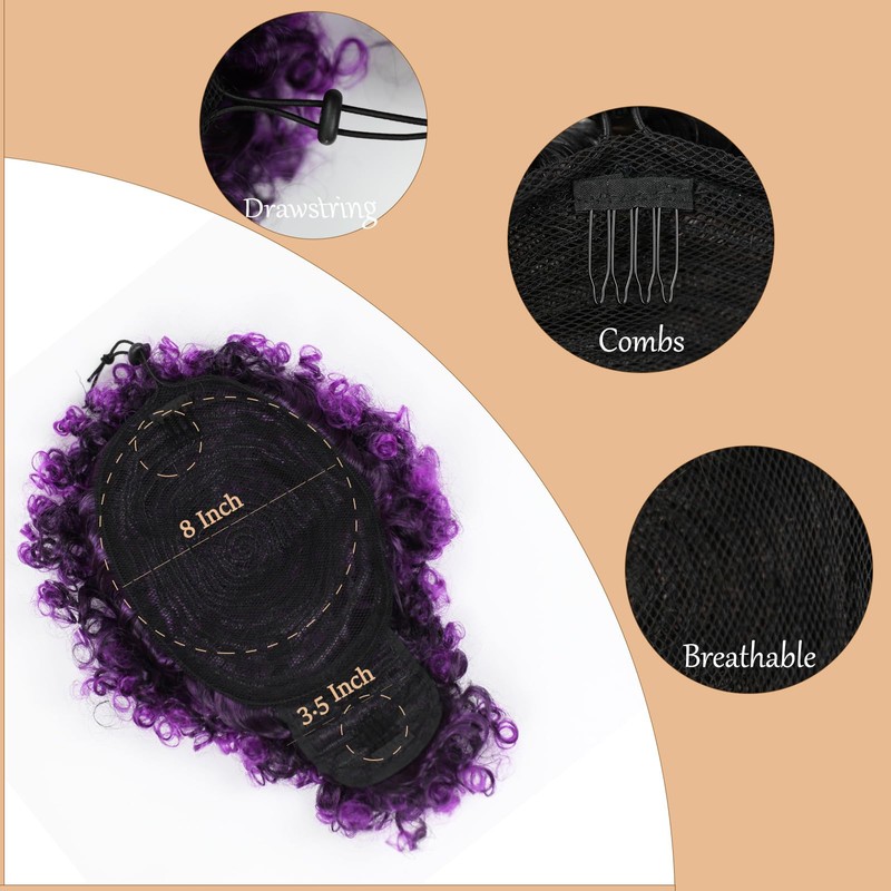 MKJVEN Short Drawstring Ponytail Extension Blonde Afro Puff Drawstring Ponytail With Bangs For Black Women Kinky Curly Mohawk Wigs Hair Clip In Bangs (Tpurple)