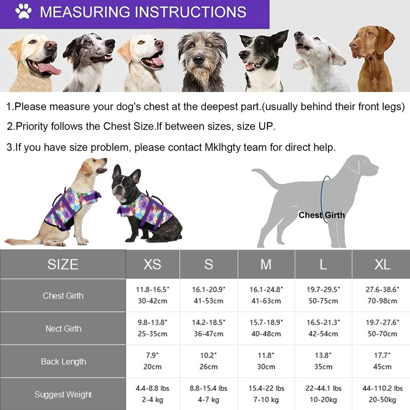 - SAFETY: Mklhgty dog swimming vest is suitable for all kinds of summer water activities. Some dogs may run away from you when playing in the water. The Mklhgty dog life vest with reflective strips and bright colors aids in locating your dog