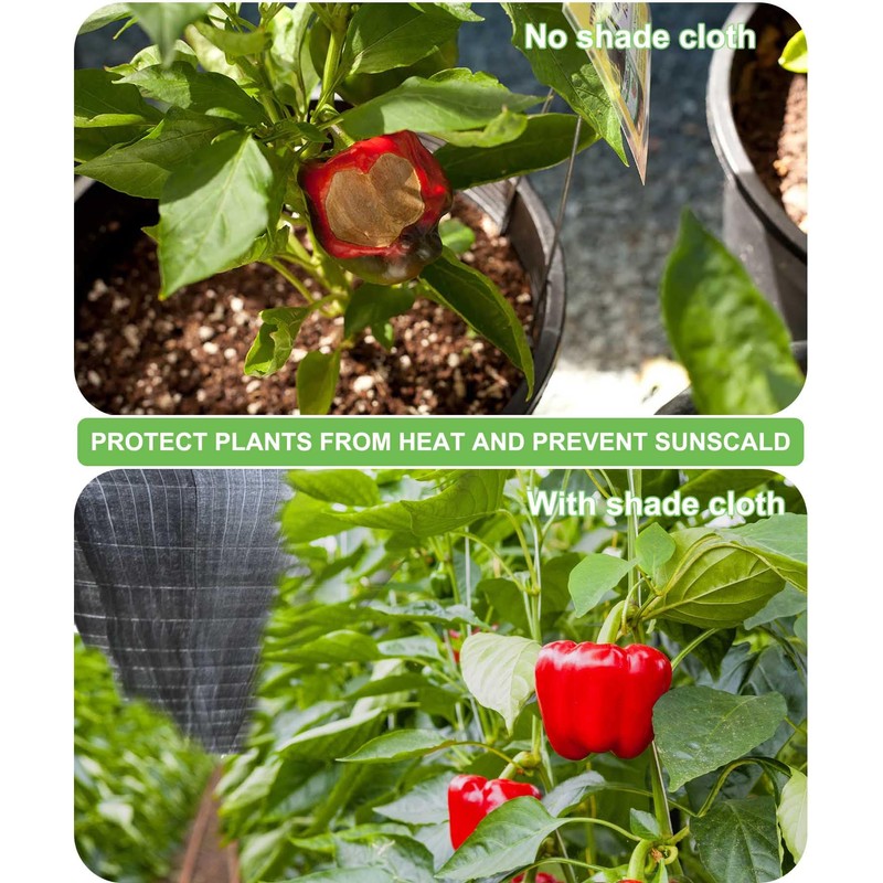- 【70% Black Shade Cloth】- 70% 10 x 20 FT sun shade cloth filters harmful UV rays and blocks up to 70% of sunlight. Breathable shade fabric and mesh tarp structure design - allow cool air to circulate freely, and hot air to be pushed out of sun shade net, and water drops through, creating a cool and comfortable environment outdoors for plants, your family or pets