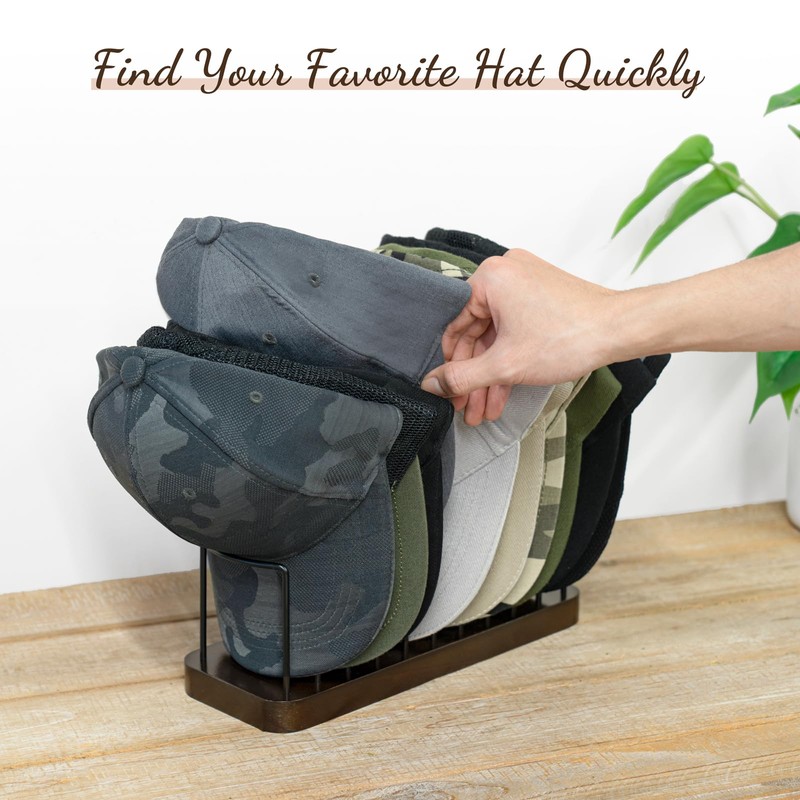 - Highly Efficient Hat Organizer : The desktop hat rack can display up to 10 baseball caps upright. Keep your hats neatly organized, easily find the hats you need without searching through piles of hats. The vintage color combination makes it look more elegant and charming to match a variety of home decor styles