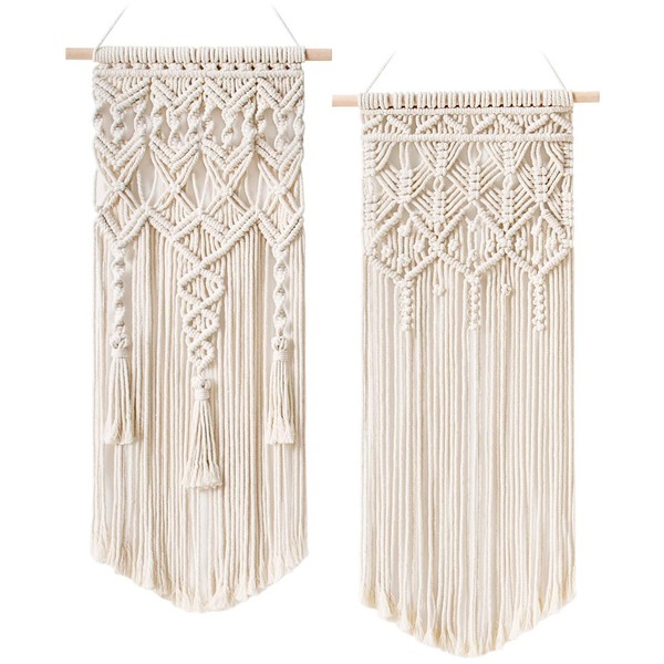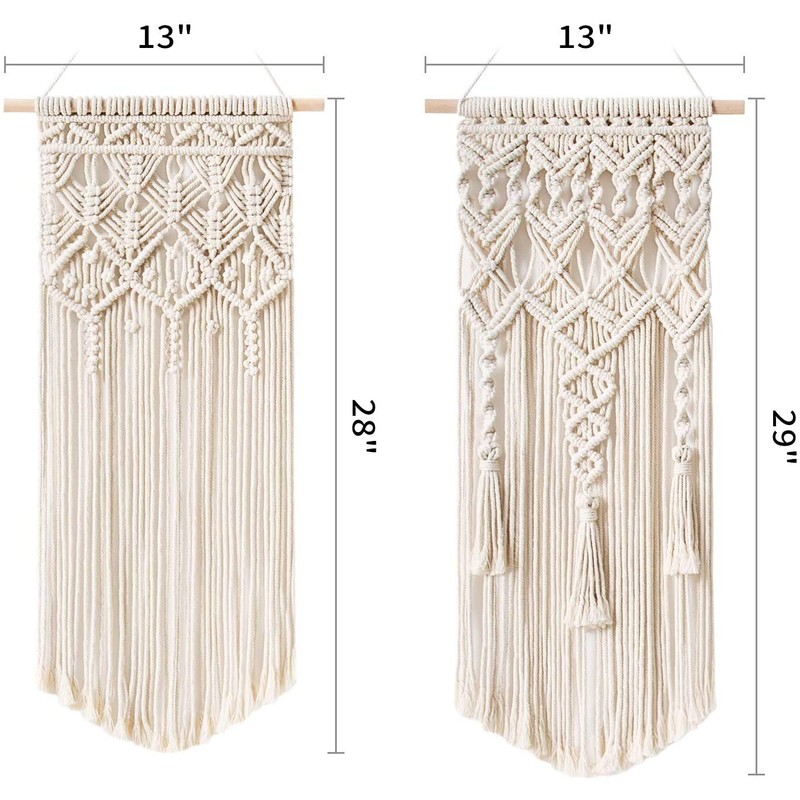 • Size: 71 cm (L) x 33 cm (W) & 74 cm (L) x 33 cm (from top to the ends of the longest edge). Quality and satisfaction of the macrame wall hanging are guaranteed! Mkouo is a registered trademark and our product is professionally manufactured and sold only.