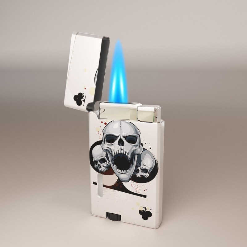 MKWGZPGW Black Skull Poker Windproof Butane Jet Torch Lighter,Funny Cool Lighters,Adjustable Jet Flame Torch,Refillable,Grill BBQ Candle Camping(Without Gas)