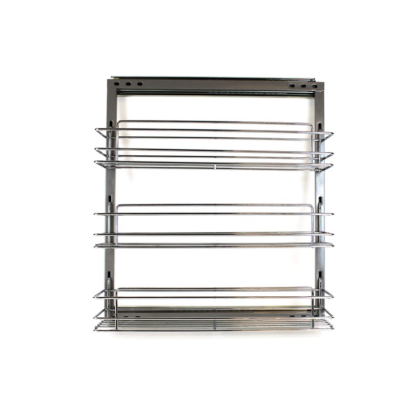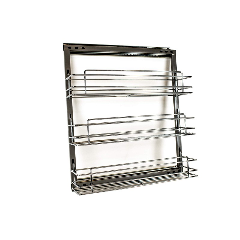 ML-017C Chrome Steel Cabinet Spice Rack- 3 Shelves Full Pullout Set, Polish Chrome Spice Rack Storage Organizer Mounts on The Cabinet Inside Left or Right