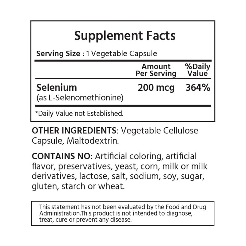 ML Naturals Selenium 200mcg 240 Vegetable Capsules. Supports Immune Health.