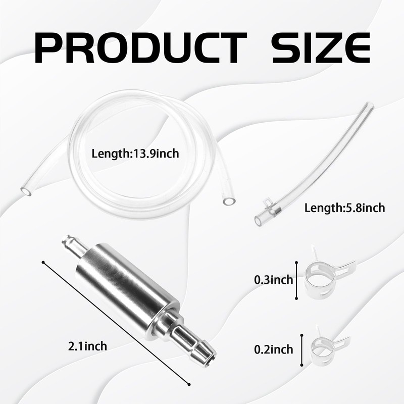 - 【Package contents】The package contains 2 rubber hoses, 3 hose clamps, and 1 aluminum check valve. The length of the long hose is 14.17 inches and the length of the short hose is 5.90 inches, which fully meets your daily use. Whether it's a motorcycle, car, truck, or SUV, it's your perfect choice. The transparent hose allows you to check the liquid more clearly, please confirm the size you need before placing an order!