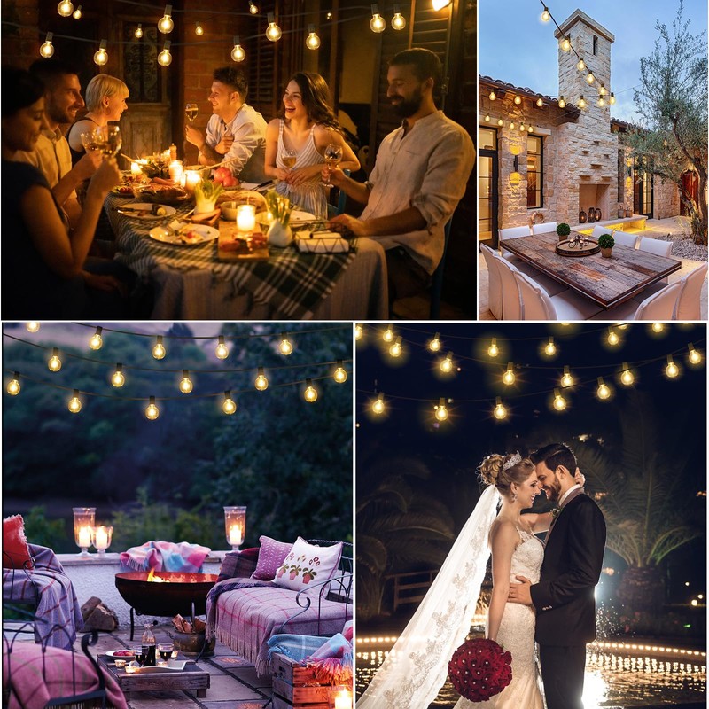 - Ideal solar string lights outdoor: The package includes 54+3 LED bulbs, 3 set of 48ft strand, 3 remotes, 1 solar panel with stake and clip, and a user manual. Prepare to immerse yourself in the luminous and captivating ambiance provided by our stunning G40 outdoor string lights. These solar-powered string lights are perfect for enhancing the atmosphere of parties, backyards, gardens, porches, cafes, and bistros, offering a magical and enchanting setting for your enjoyment