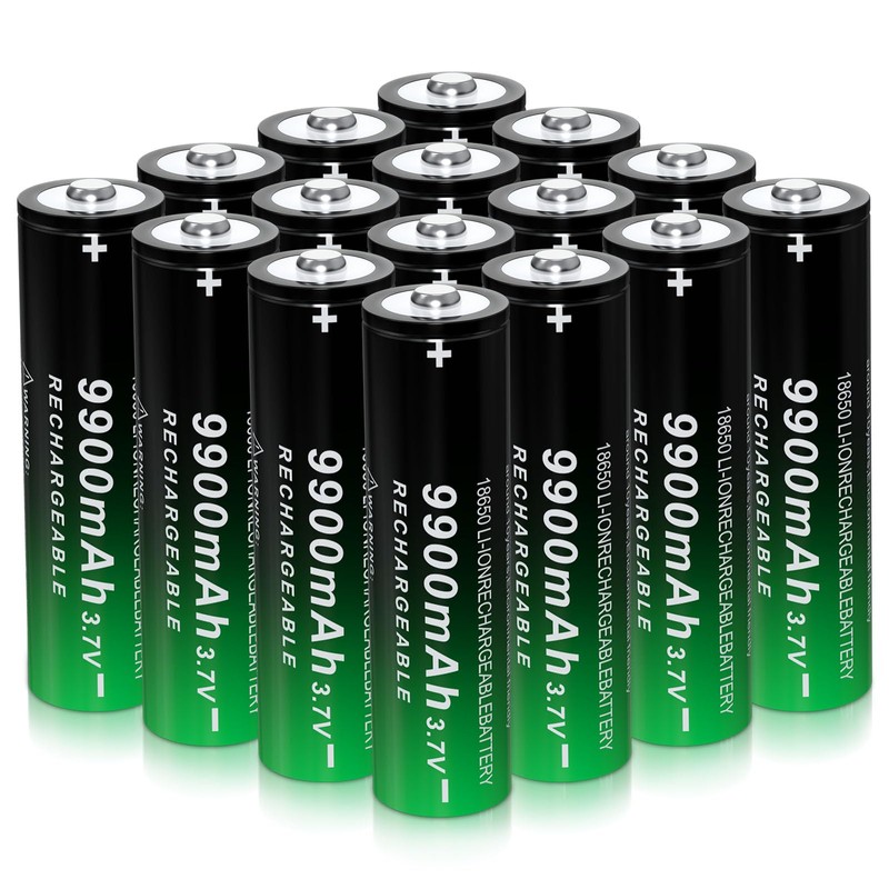 MLGBDC 18650 Rechargeable Battery 9900mAh High Capacity Button Top Battery 3.7 Volt for Headlamp and Flashlight, etc (16Pack, 3.7v)