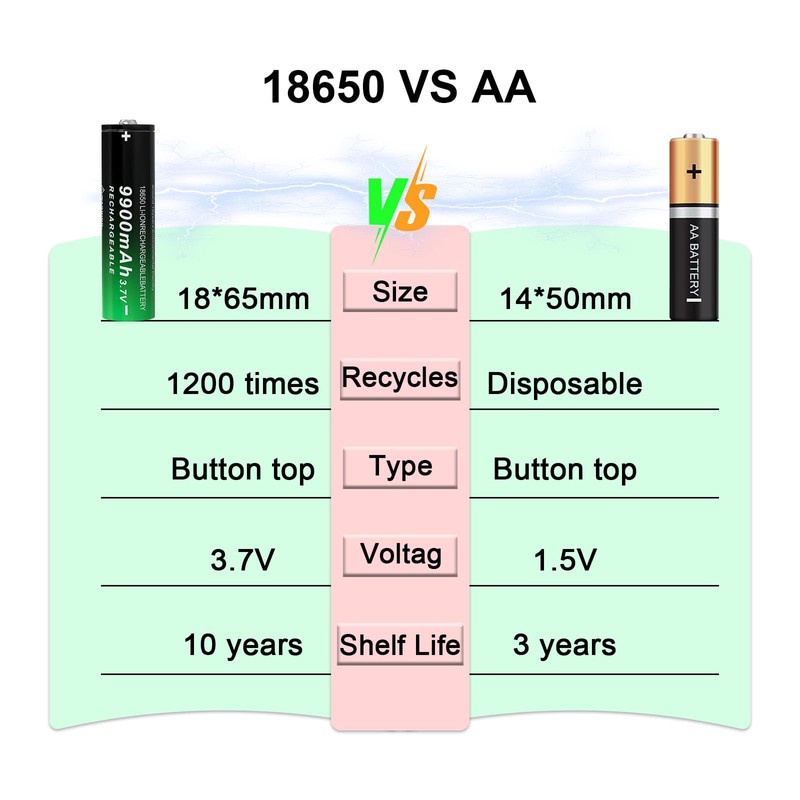 - Wide Compatibility: 3.7volt 18650 Rechargeable Battery for flashlights, headlights, digital cameras, toys,doorbells and other electronic devices. It's convenient to travel, camping and hiking.