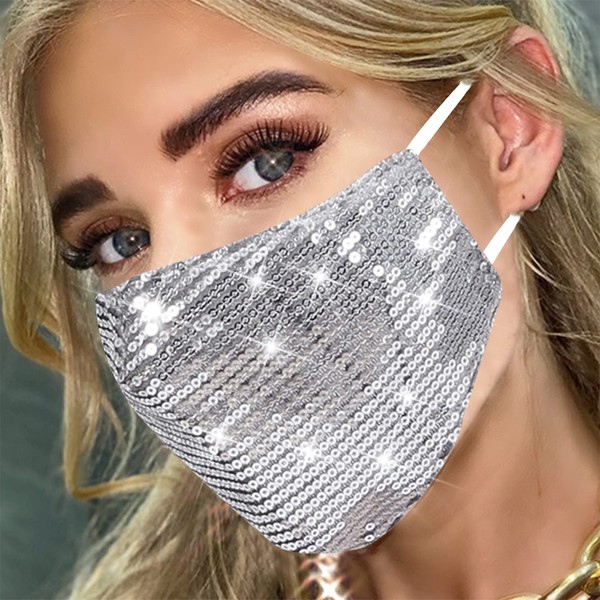 MLGDA Sparkly Sequins Face Cover Glitter Cotton Sequin Masc Masquerade Face Covering (Silver)