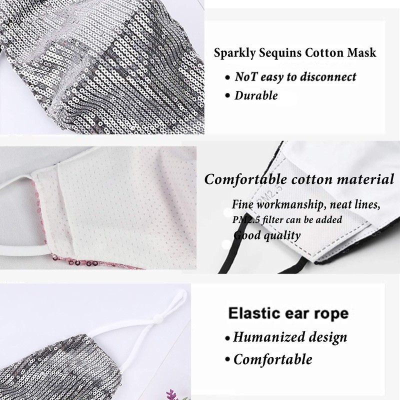• Filter Element Can be Placed: The shiny fashion pure cotton sequin Face Covering is a multi-purpose product. You can place a filter element (product not including a filter element) to prevent dust, pollution etc