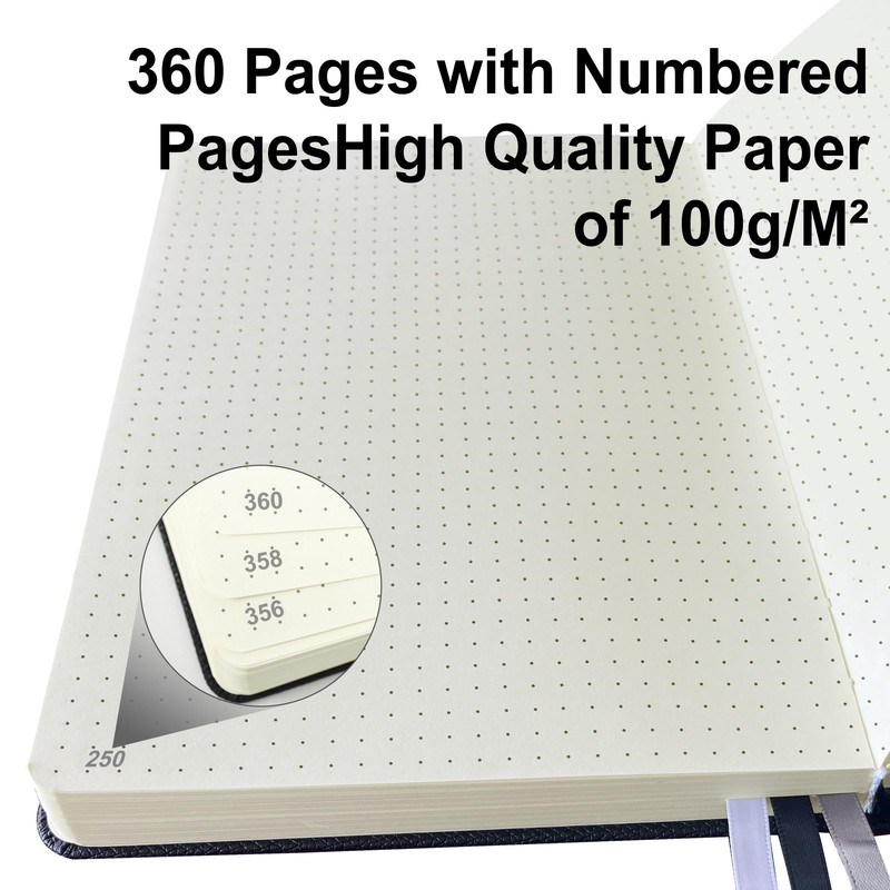 - HIGH QUALITY 100GSM PAPER: Notebooks uses 100GSM thick paper, which is thicker than ordinary paper and prevents ink seepage. The pages have Lined,Dotted and Squared,It is suitable for most fountain pens.It can be easily laid flat 180°,Convenient for writing and note taking.