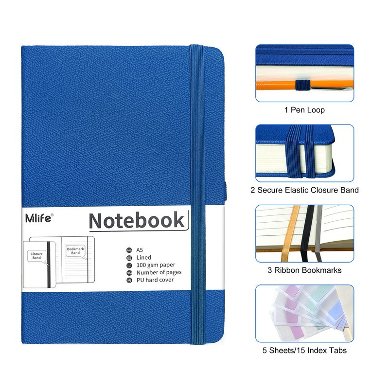 Mlife Notebook A5 is ideal as a travel diary, for research, for writing down thoughts, diary and meeting notes and is therefore ideal for school and office. It is the best choice for a gift for Christmas, birthday, New Year or graduation.