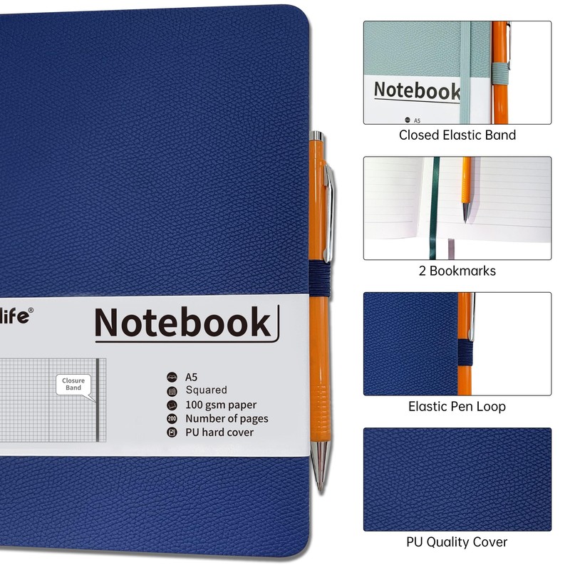 - HARDCOVER NOTEBOOK: Mlife A5 Notebooks The exquisite case is durable and soft to the touch; the sturdy PU leather leather cover prevents the inside paper from being damaged;notepad with two bookmarks Easy to record and an elastic firm strap with a width of 7 mm prevent the note book from opening constantly and protect the pages well.