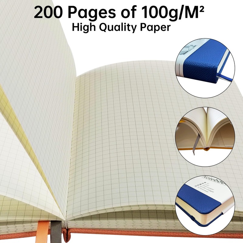 - SUITABLE SIZE:Notebooks is 21.3 × 14.6 cm(5.75 x 8.38 inches), Lined are made of 100 gsm acid-free cream thick paper, with 200 pages a line spacing of 7 mm,paper with high ink profile to prevent bleed through. and is suitable for most pens.