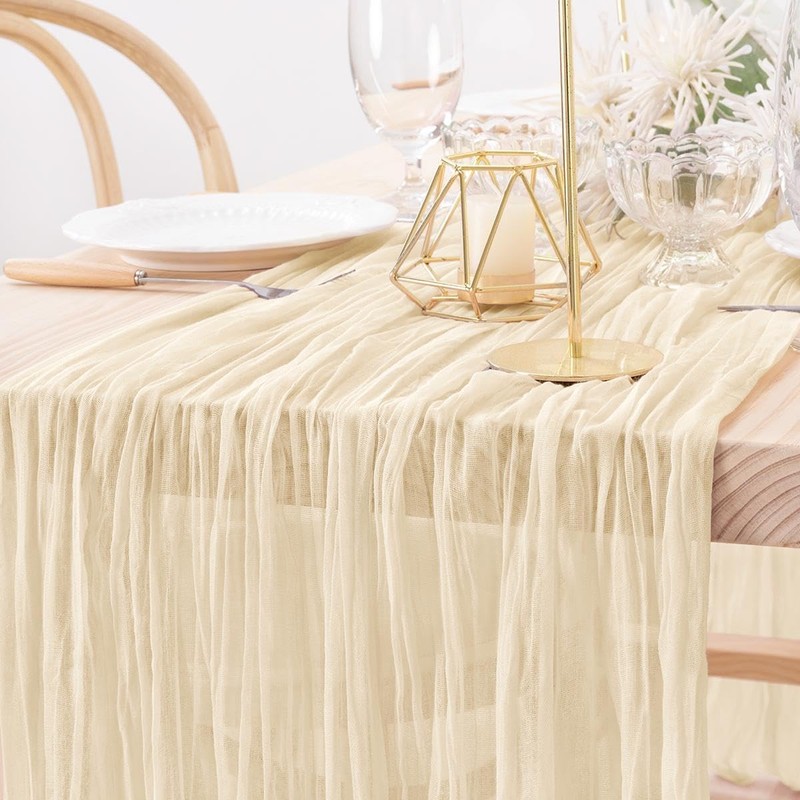 MLMW Beige Table Runner Cheesecloth Easter Spring Cheese Cloth Runner Boho 160 inch Gauze Rustic Sheer Table Runner Extra Long 13.3ft for Wedding Party Baby Bridal Shower Birthday