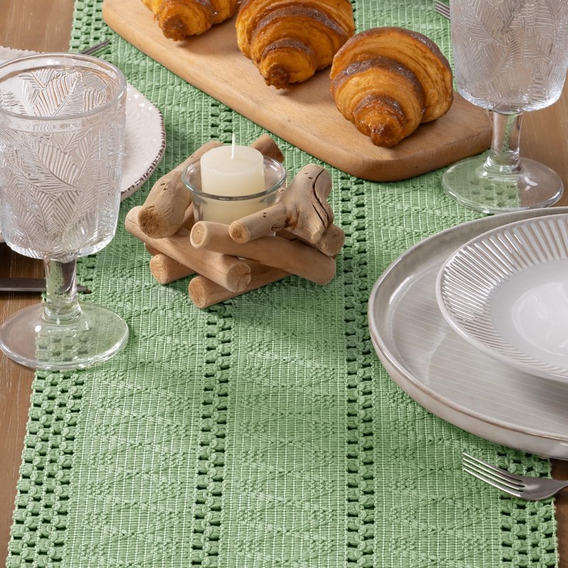 MLMW Boho Table Runner 48 inches Farmhouse Rustic Home Decor Sage Green Ivory Coffee Table Centerpiece Macrame Woven Dresser Runner for Spring Living Room Dining Room Bedroom