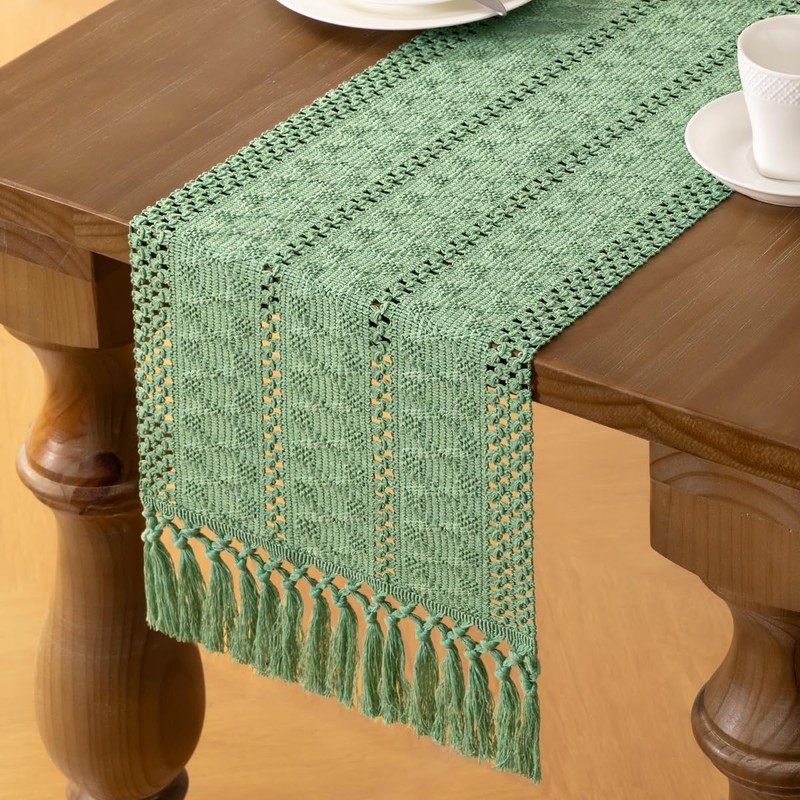 - Boho Home Decor: This table runner is designed with handmade tassels and beautifully stitched, the boho style adds a unique and festive touch to any table setting.