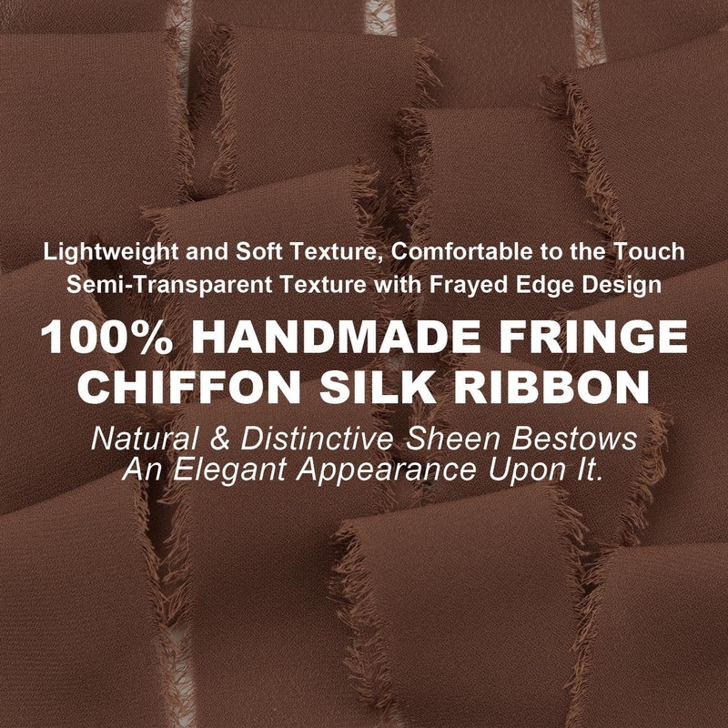 - 【Premium Fringe Chiffon Silk Ribbon】Our fabric ribbon is crafted from premium chiffon fabric, known for its lightweight and soft texture that offers a comfortable touch. The unique weaving technique imparts a semi-transparent texture and graceful drape to chiffon ribbon, giving them a distinctive visual appeal, especially when they catch the light and exhibit a beautiful sheen.