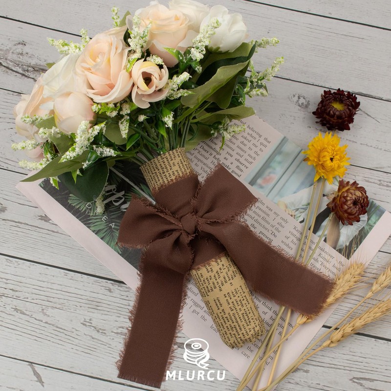 - 【Rustic Brown Chiffon Ribbon】The brown chiffon ribbon exudes warmth and natural elegance with its rich, cappuccino hue. Its deep, rustic tone brings a sense of grounded sophistication, while the chiffon fabric offers a lightweight and airy texture that adds a refined touch. Perfect for creating a cozy, vintage, or nature-inspired atmosphere, this ribbon is ideal for weddings, rustic-themed events, and autumn celebrations.