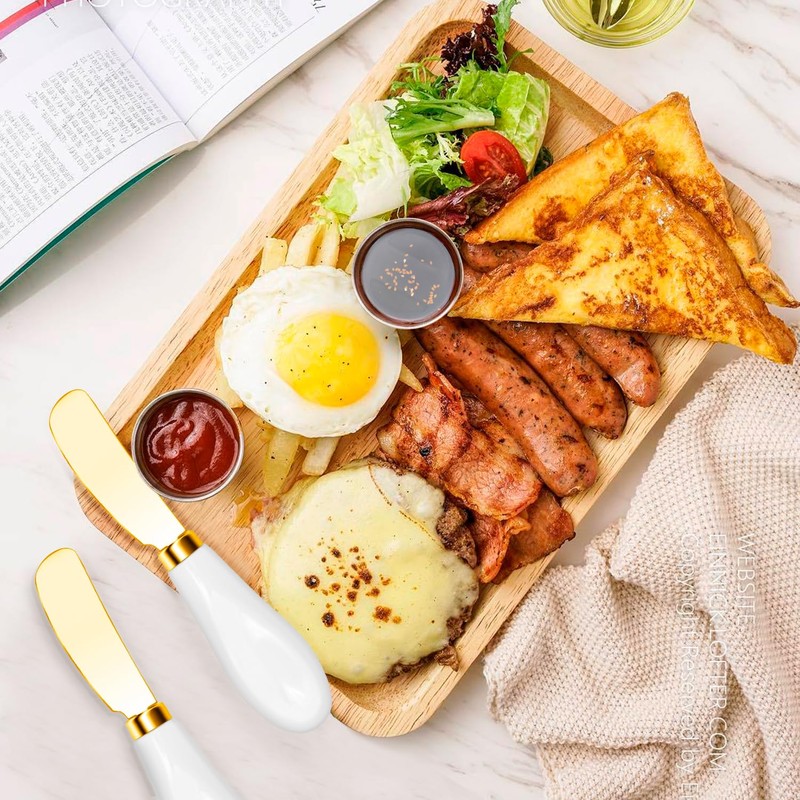 - 【Versatile Butter Knife for Multiple Uses】Perfect for smoothly spreading butter, soft cheeses, cream cheese, jam, peanut butter, avocado, pâté, and other spreads. Suitable for breakfast, brunch, appetizers, charcuterie platters, picnics, parties, and elegant dinners—adding convenience and sophistication to both everyday dining and special occasions.