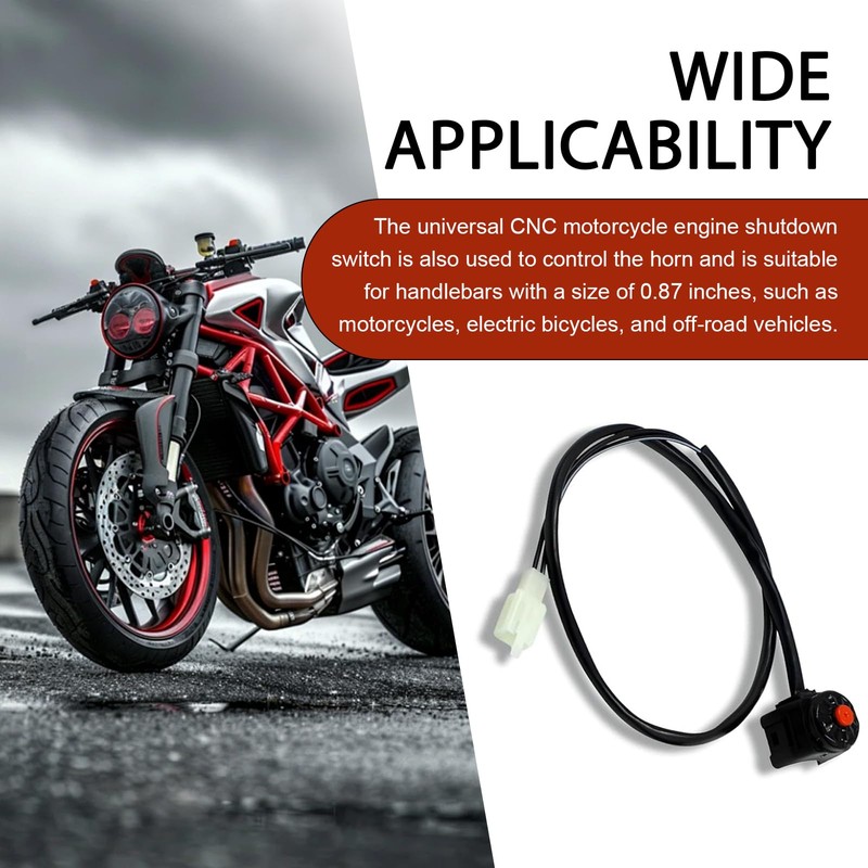 ● Dual-Wire System: Grounds the ignition coil when pressed, ensuring instant engine shutdown.