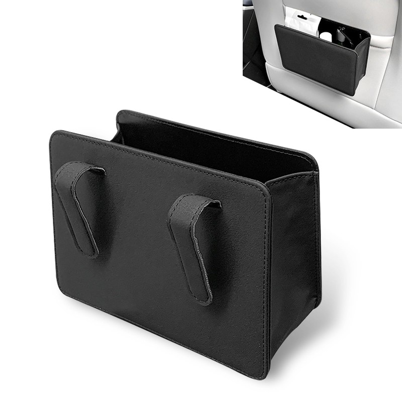 MLY Car Trash Can, Foldable Hanging Mini Cars Storage Bag Container, Multi-Function Leather Open-Top Car Trash Bin, Car Garbage Organizer Can with 30 PCS Trash Bags for Car, SUV (Black)