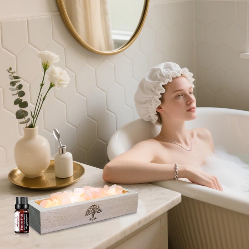 MLYNKL Himalayan Salt Lamp Diffuser - 300g Pink Salt with Wood Base, USB Powered, Warm Light & 10ml Passion Fruit Essential Oil Set for Aromatherapy, Relaxation, Meditation, Home Decor, Gifts