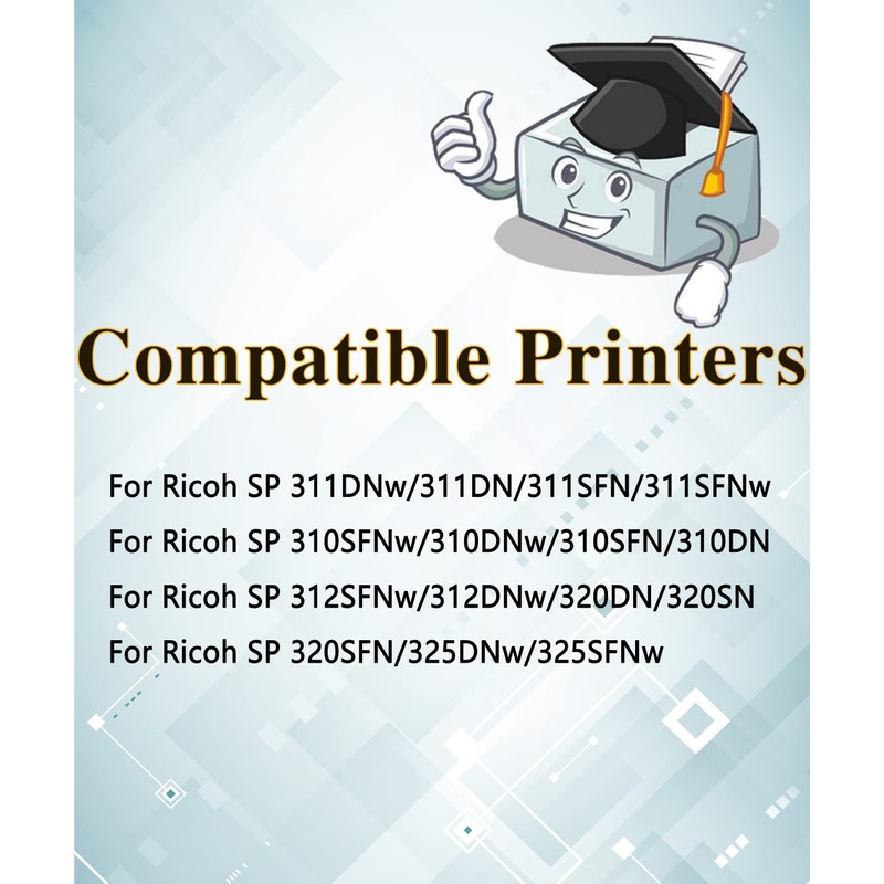 • Printer Compatibility: Ricoh SP 311DNW, 311SFNW, 325 DNW, 325 SFNW Printers