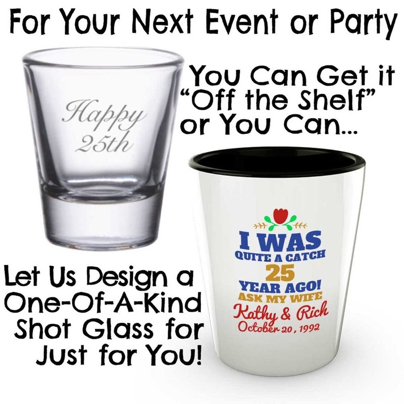 - Shot Glasses Are A Great Personalized Item To Give And Receive. Guaranteed To Be Used And Displayed For Years And Showed Off In Kitchens, Man Caves, She-Sheds, And Home & Office Desk.