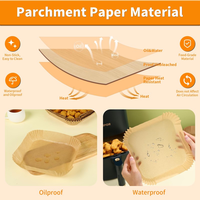 • 【Save Time on Cleanup】Our parchment paper liners are a must-have for air fryer owners. They save you so much time on cleanup, making baking, roasting, cooking, and serving food occasions a breeze.