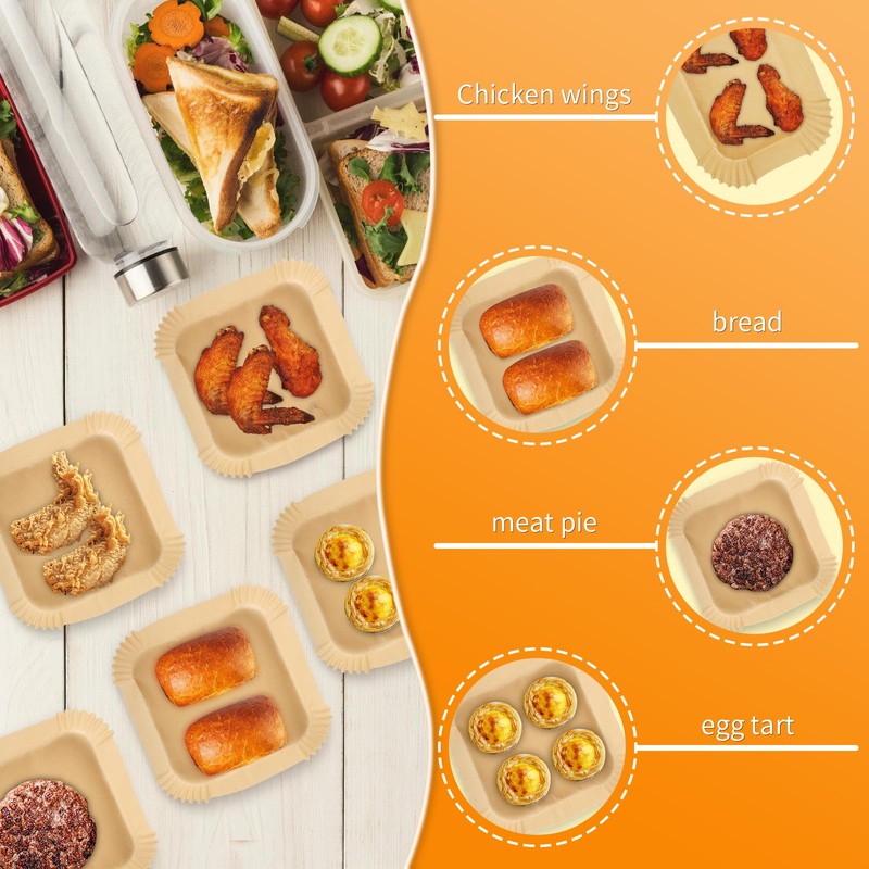 • 【Safe and Food-Grade】Our unbleached, food-grade natural wood pulp liners are waterproof, oil-proof, and heat-resistant up to 428°F. No need to worry about any effect on food flavor or air circulation.
